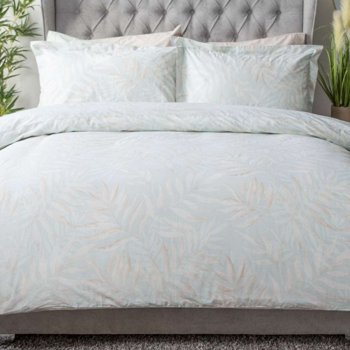 Clara is a design that is striking in its simplicity. Large scale leaves, with a subtle shadow effect in the background, printed on a soft duck egg ground. Bold and yet understated. Made from 200 thread count 100% pure cotton, the duvet set includes oxford pillowcases to add that special finishing touch. This duvet cover comes with a button fastening.