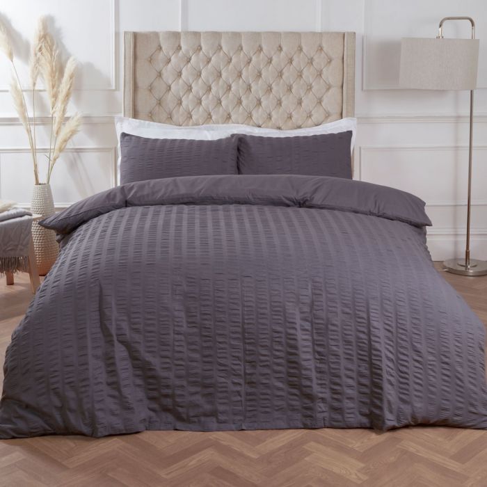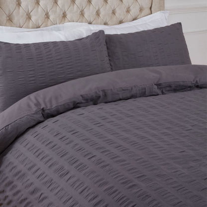 Seersucker Single Duvet Set - Charcoal
