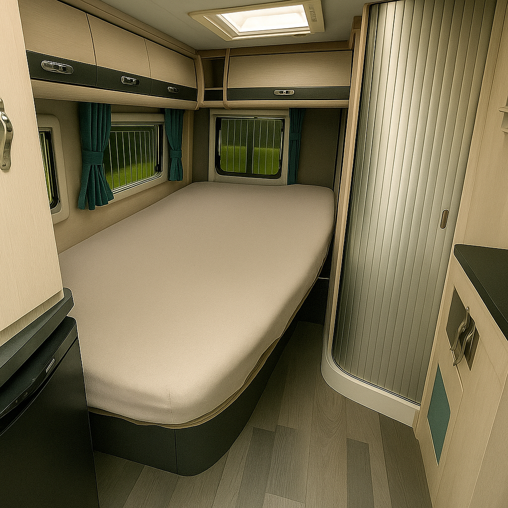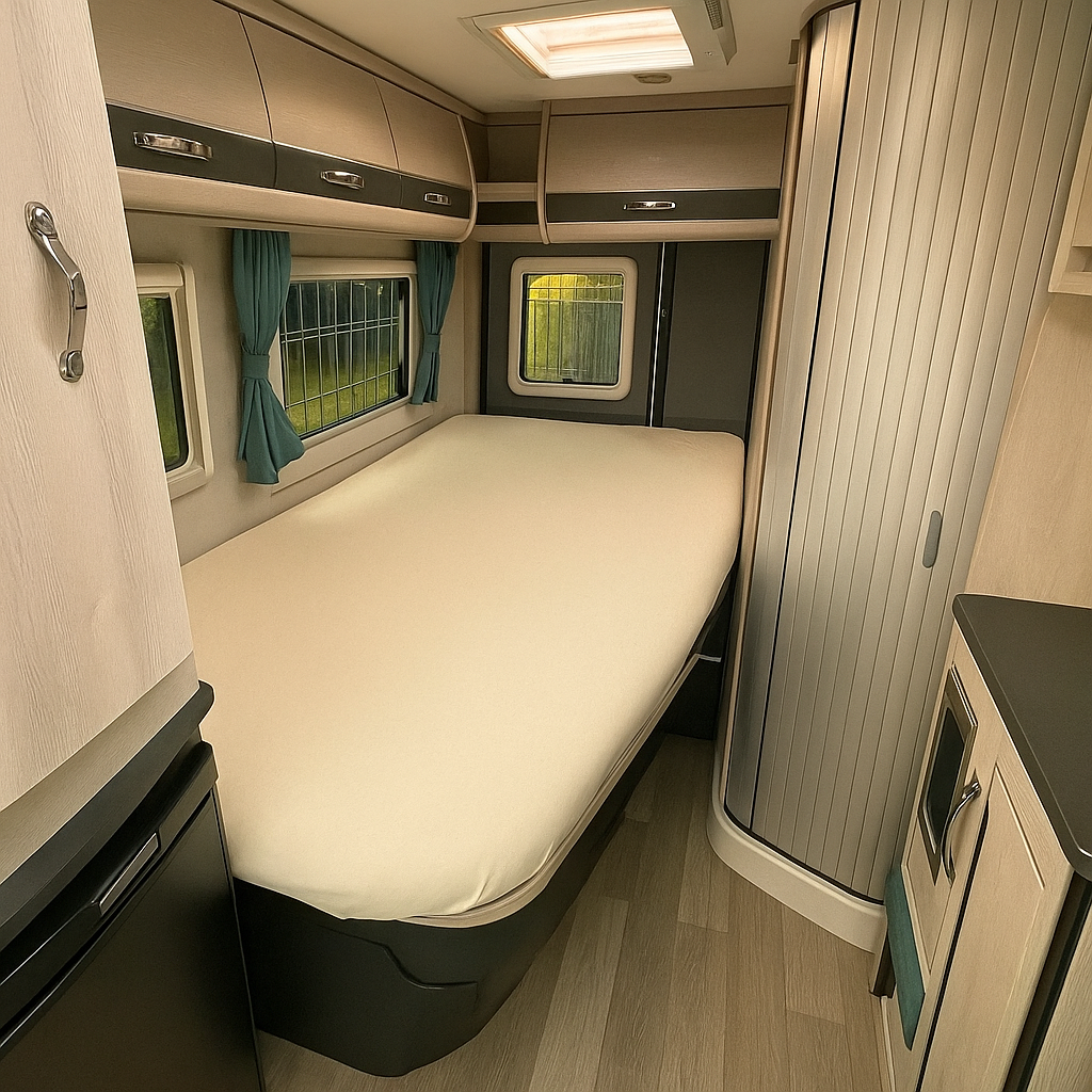 Whether your bed sits in a Bailey, Swift, Elddis, Coachman, Adria, Autotrail, Chausson or any other leisure vehicle, simply enter your make, model and year. We use your details to match your mattress to our measurement database and craft a fitted sheet that follows every curve of your right-hand French bed perfectly.